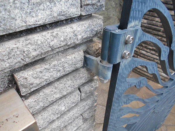 元は石門柱に直接取り付けていましたが、下の床石を掘って支柱を立てて、