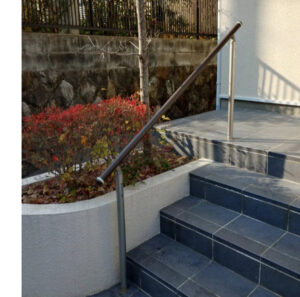 外階段に手すりを取り付け、昇り降りがしやすく安全な玄関になりました。