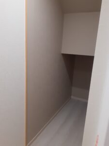 1階ホールの一角に、奥行きを活かした収納スペースを設けました。